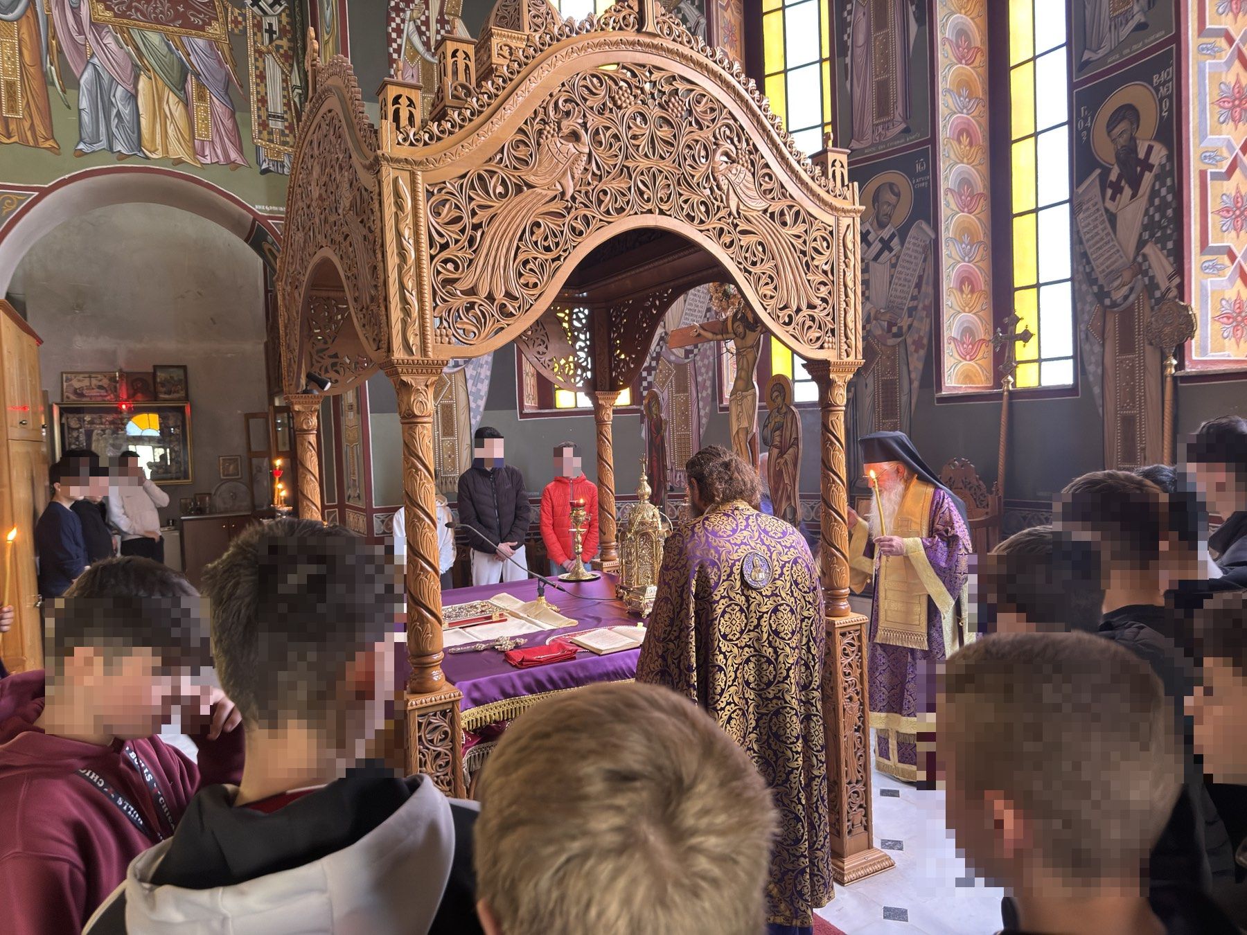 Την Παρασκευή 3 Απριλίου 2026 ο Σεβασμιώτατος Ποιμενάρχης μας κ. Γεώργιος τέλεσε τη Θεία Λειτουργία των Προηγιασμένων Τιμίων Δώρων στον Ιερό Ναό των Αγίων Κωνσταντίνου και Ελένης Αλιάρτου, με τη συμμετοχή των μαθητών και εκπαιδευτικών του 1ου Νηπιαγωγείου, του 1ου Δημοτικού Σχολείου, του Γυμνασίου και του Λυκείου της κωμοπόλεως. Στο τέλος της Θείας Λειτουργίας ο Σεβασμιώτατος μίλησε στα παιδιά για το Πάσχα, τι σημαίνει πέρασμα, ανέφερε ότι οι άνθρωποι αναζητούμε την αθανασία, την οποία μας προσφέρει μόνον ο Χριστός, και ευχήθηκε σε όλους καλή Ανάσταση.