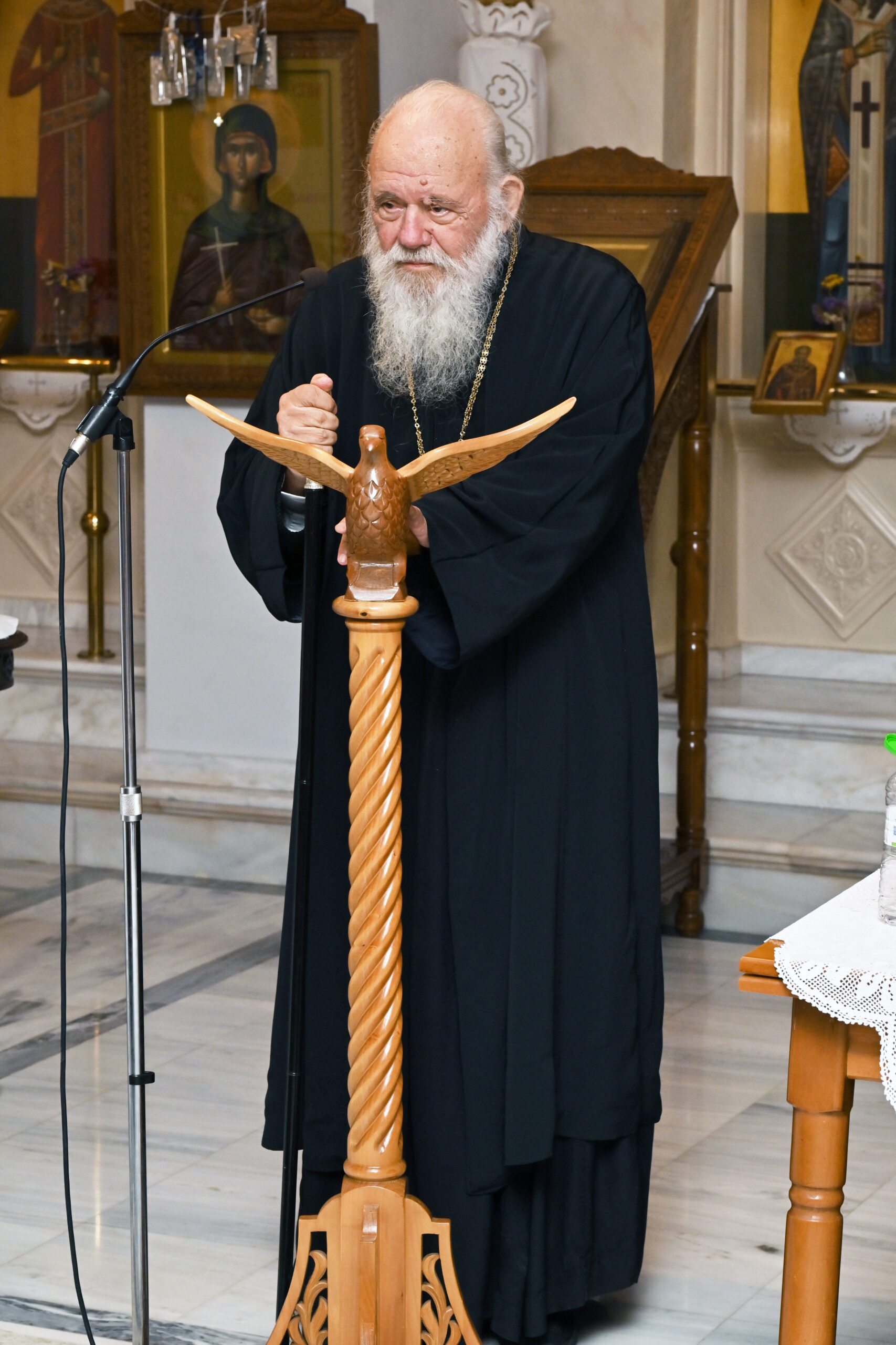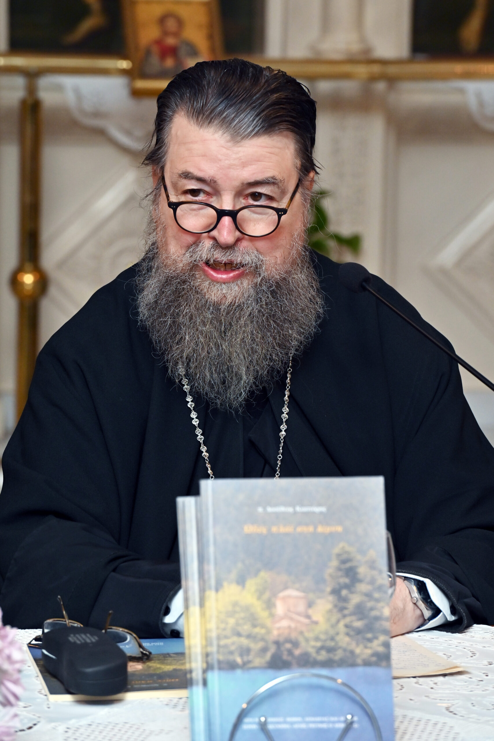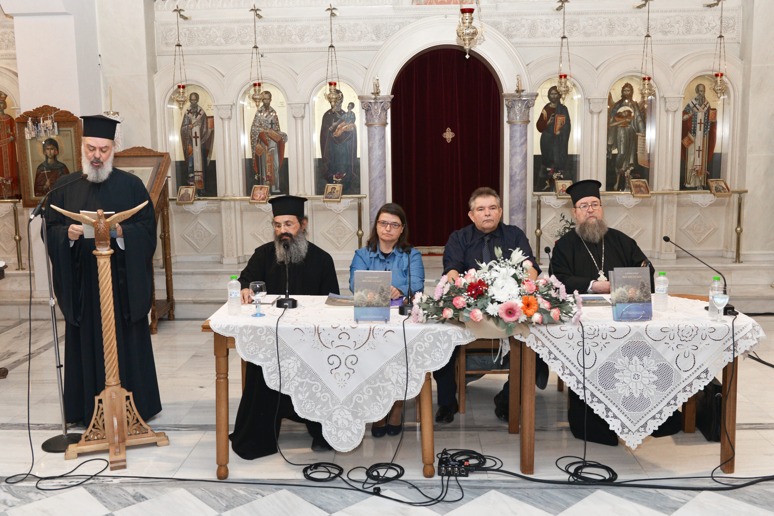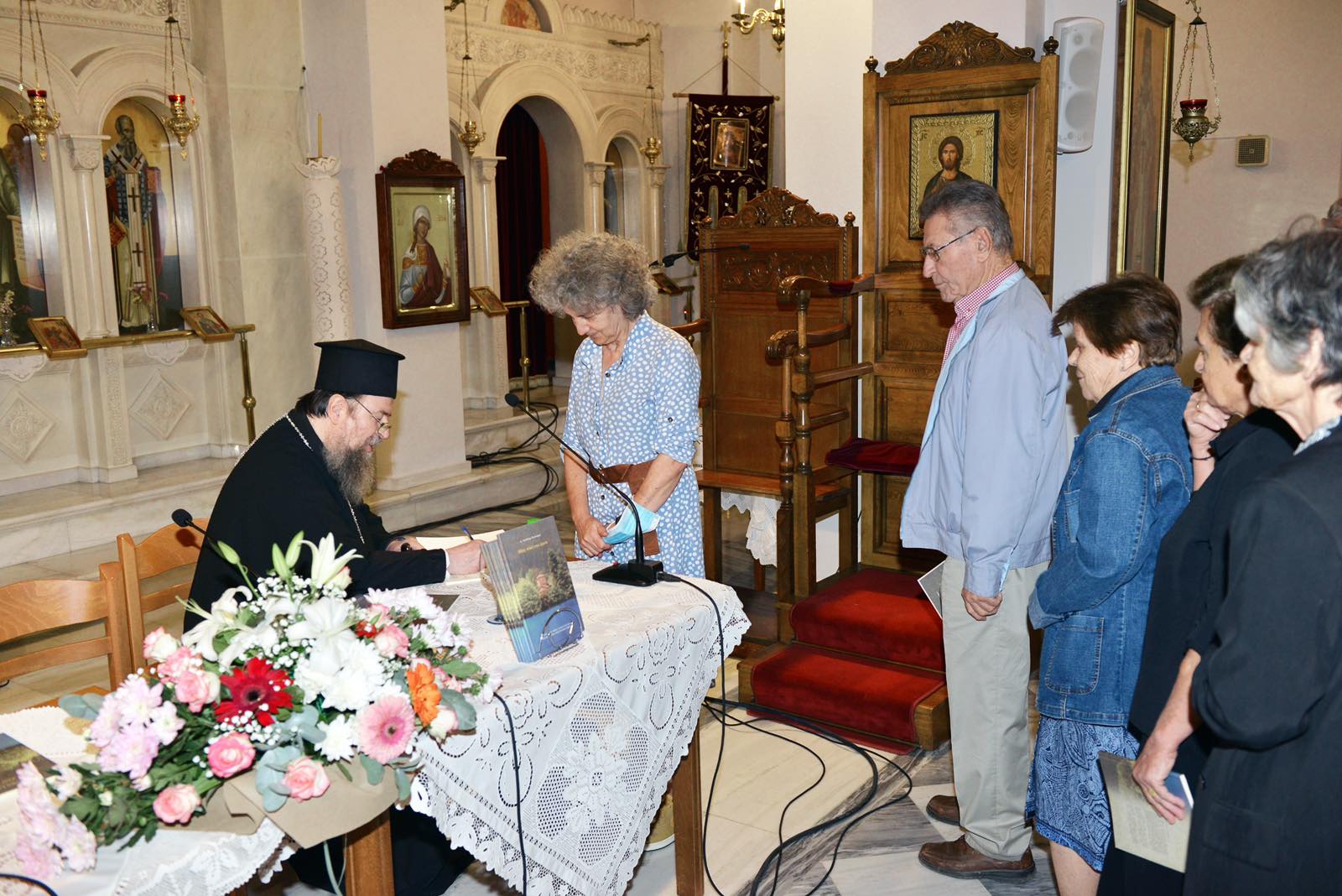 Στο τέλος του χαιρετισμού ο Σεβασμιώτατος ευχαρίστησε τον Μακαριώτατο για την υψηλή παρουσία Του, τους διακεκριμένους συγγραφείς-ομιλητές που υπεβλήθησαν στον κόπο να παρουσιάσουν το πόνημα του π. Δοσιθέου, τον π. Σπυρίδωνα Βασιλάκο για τον συντονισμό της εκδήλωσης αλλά και τον π. Αλέξιο Σαμαρτζή για την άψογη διοργάνωση της παρουσίασης.