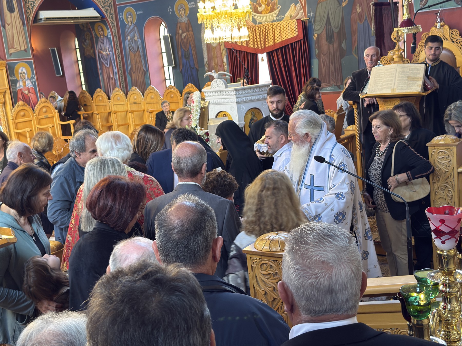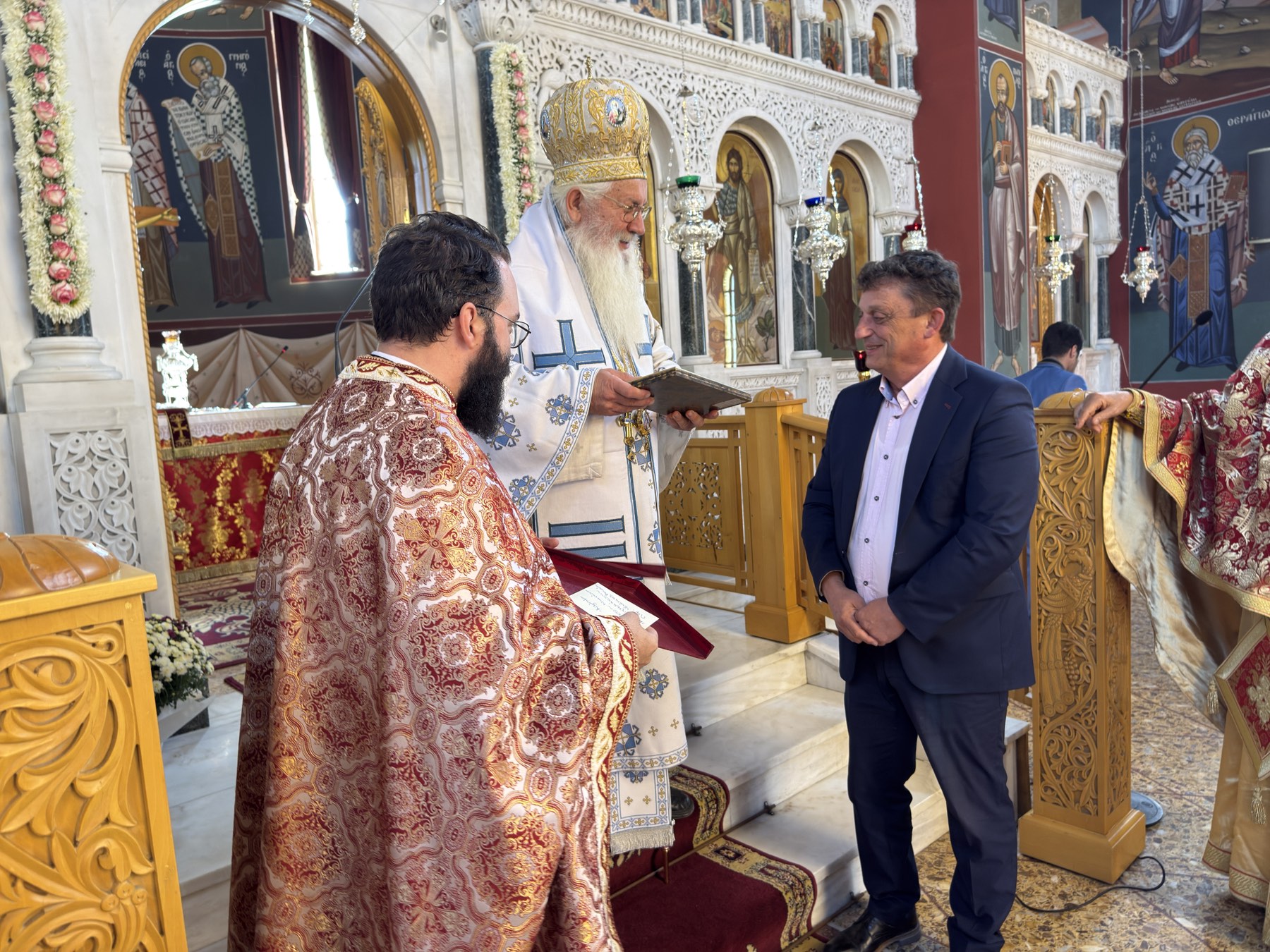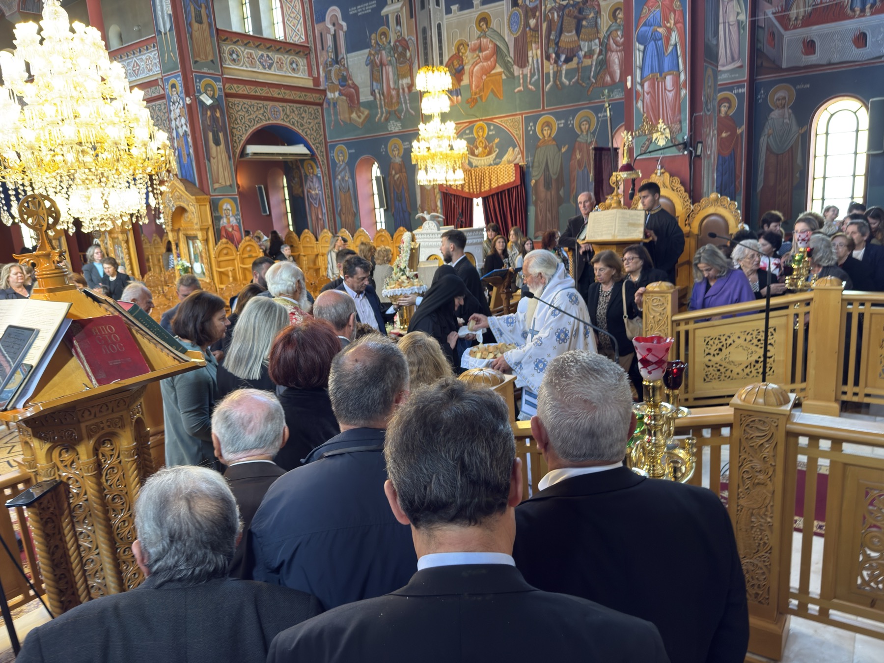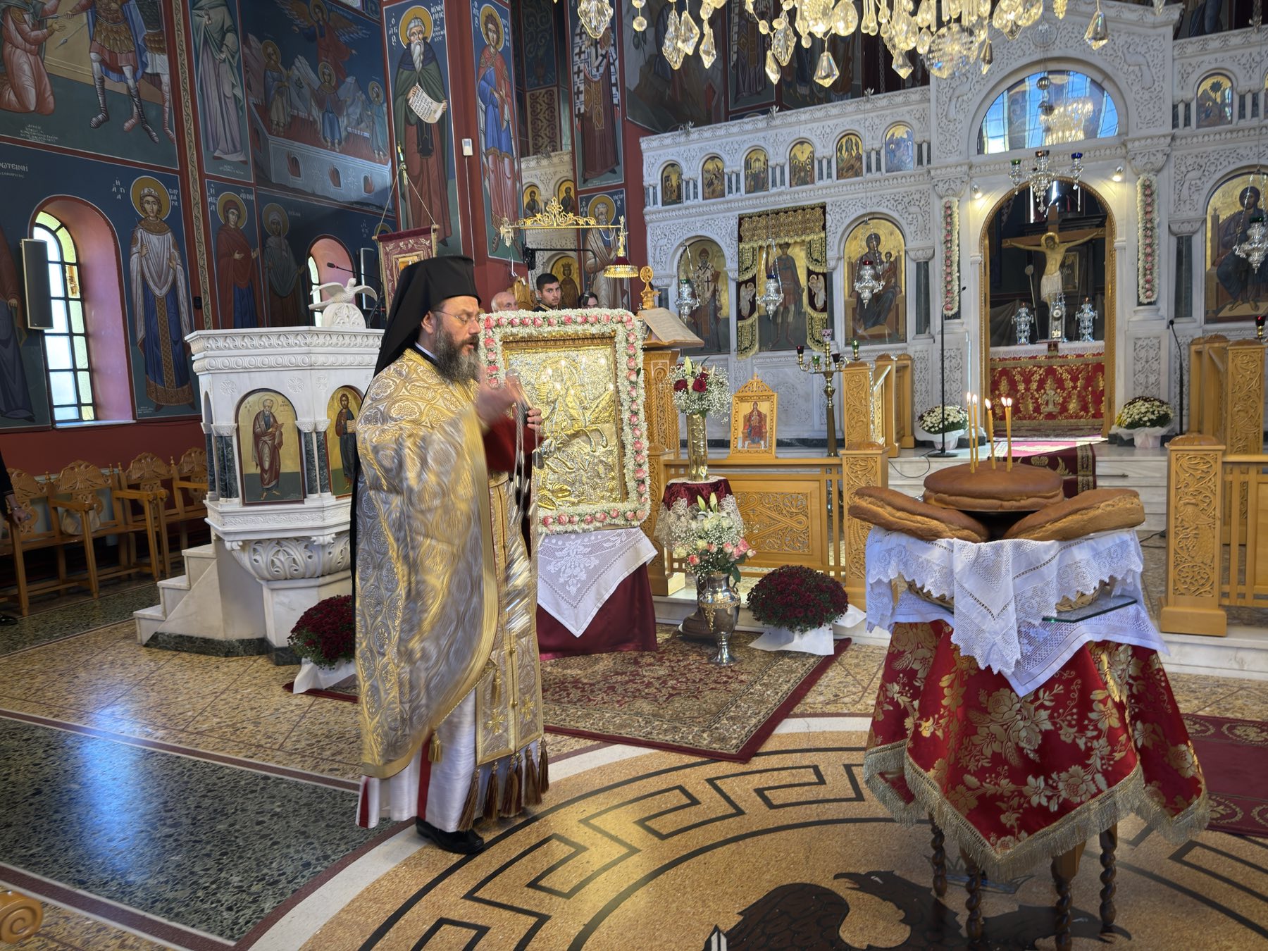 Προ του “Δι΄ευχών” ο Σεβασμιώτατος στο λόγο του προς τους πιστούς αναφέρθηκε στη γενναιότητα και παλικαριά, που επέδειξε ο Άγιος Δημήτριος υπομένοντας τα μαρτύρια για την πίστη του στον Χριστό και προέτρεψε τους πιστούς να μιμηθούν την ακλόνητη πίστη του Αγίου και να φωτίζουν με την ζωή τους δίδοντας μαρτυρία Ιησού Χριστού. Επίσης, εκ μέρους του Εκκλησιαστικού Συμβουλίου ο Σεβασμιώτατος πρόσφερε στον Αντιπεριφερειάρχη Βοιωτίας κ. Γεώργιο Ντασιώτη μια εικόνα του Αγίου Δημητρίου.