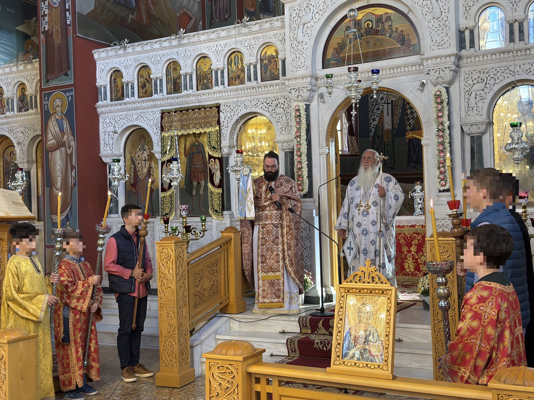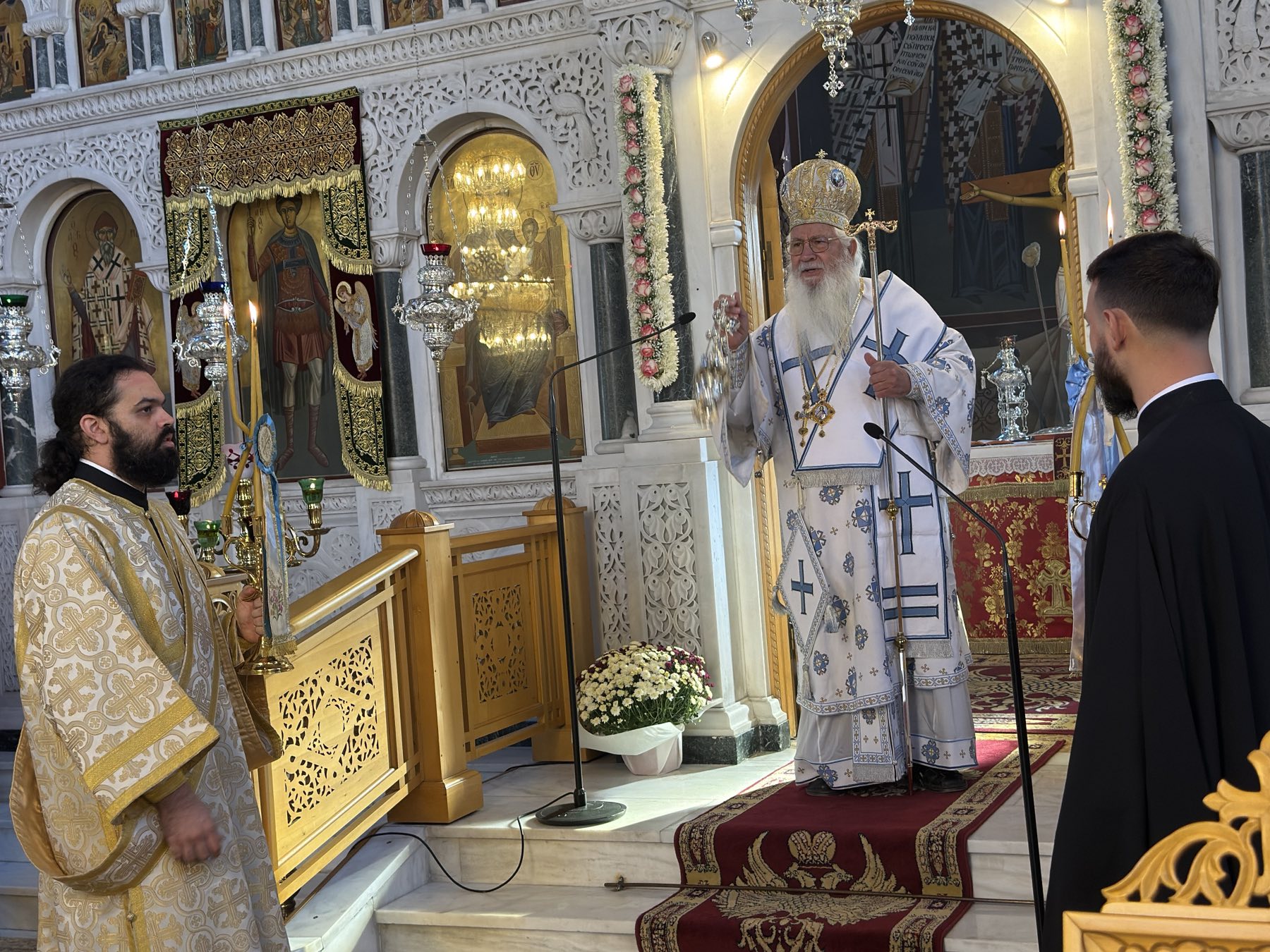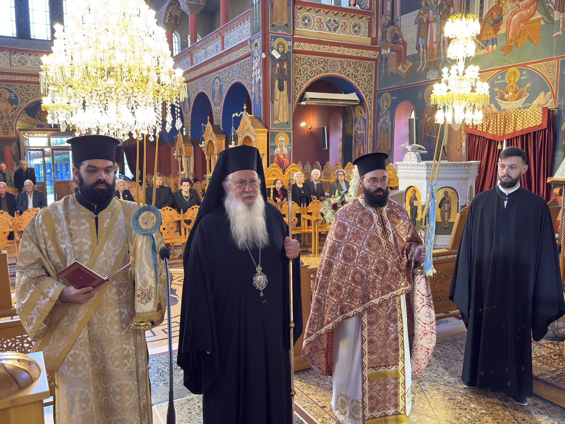 Προ του “Δι΄ευχών” ο Σεβασμιώτατος στο λόγο του προς τους πιστούς αναφέρθηκε στη γενναιότητα και παλικαριά, που επέδειξε ο Άγιος Δημήτριος υπομένοντας τα μαρτύρια για την πίστη του στον Χριστό και προέτρεψε τους πιστούς να μιμηθούν την ακλόνητη πίστη του Αγίου και να φωτίζουν με την ζωή τους δίδοντας μαρτυρία Ιησού Χριστού. Επίσης, εκ μέρους του Εκκλησιαστικού Συμβουλίου ο Σεβασμιώτατος πρόσφερε στον Αντιπεριφερειάρχη Βοιωτίας κ. Γεώργιο Ντασιώτη μια εικόνα του Αγίου Δημητρίου.