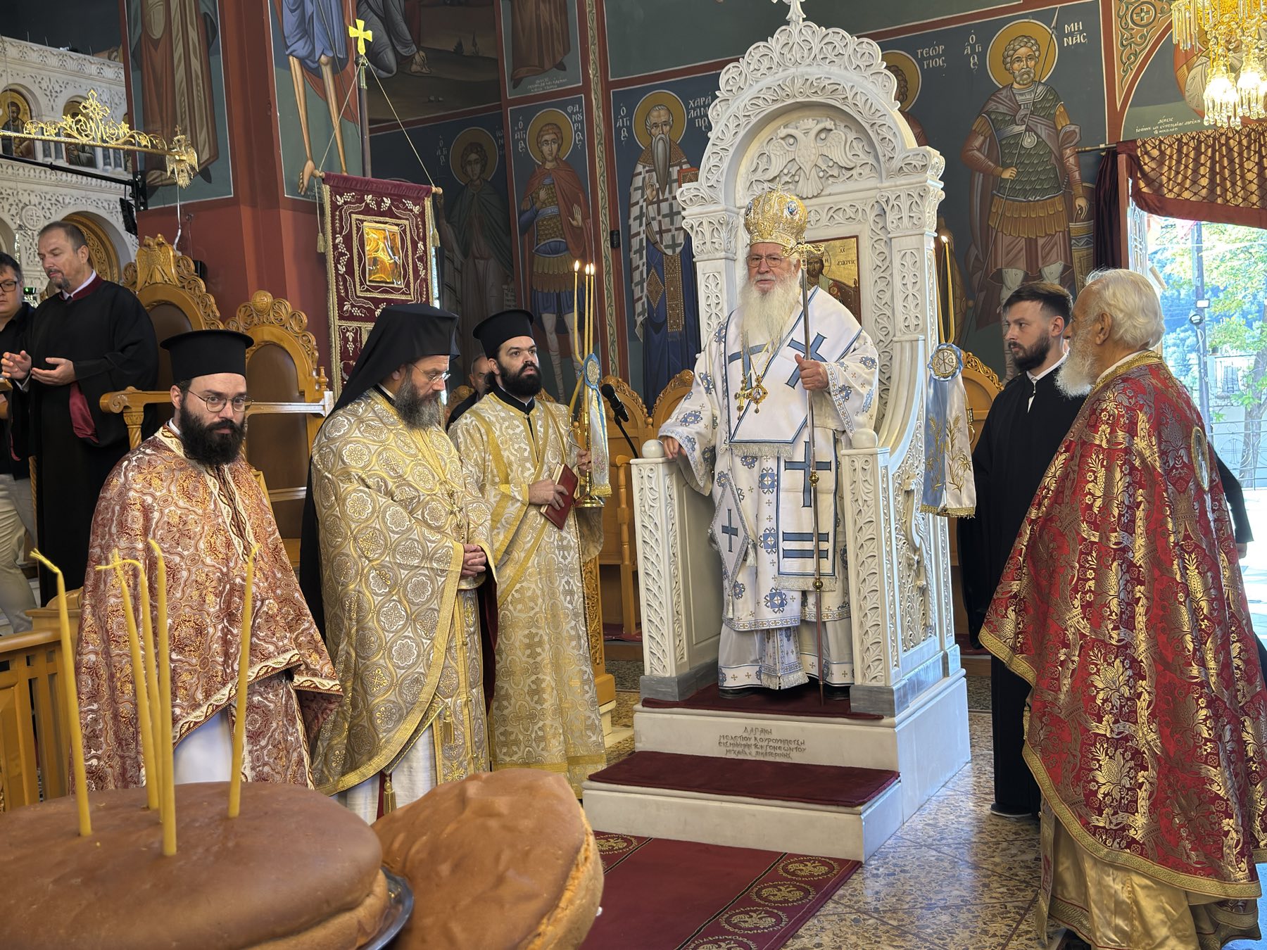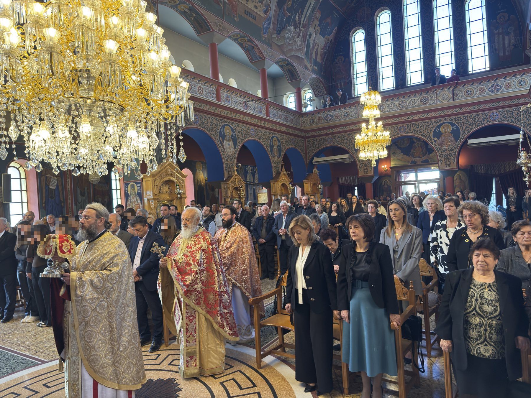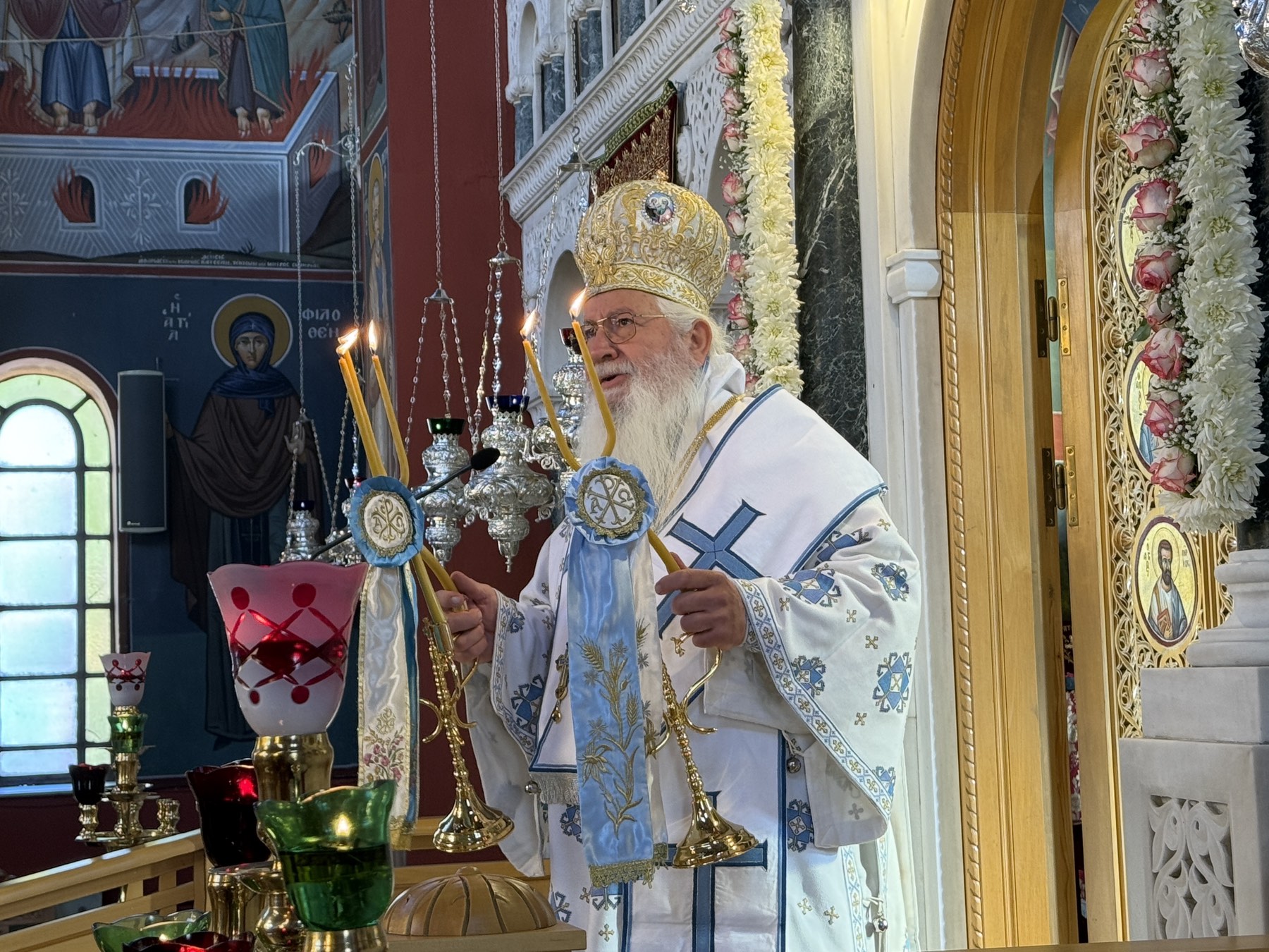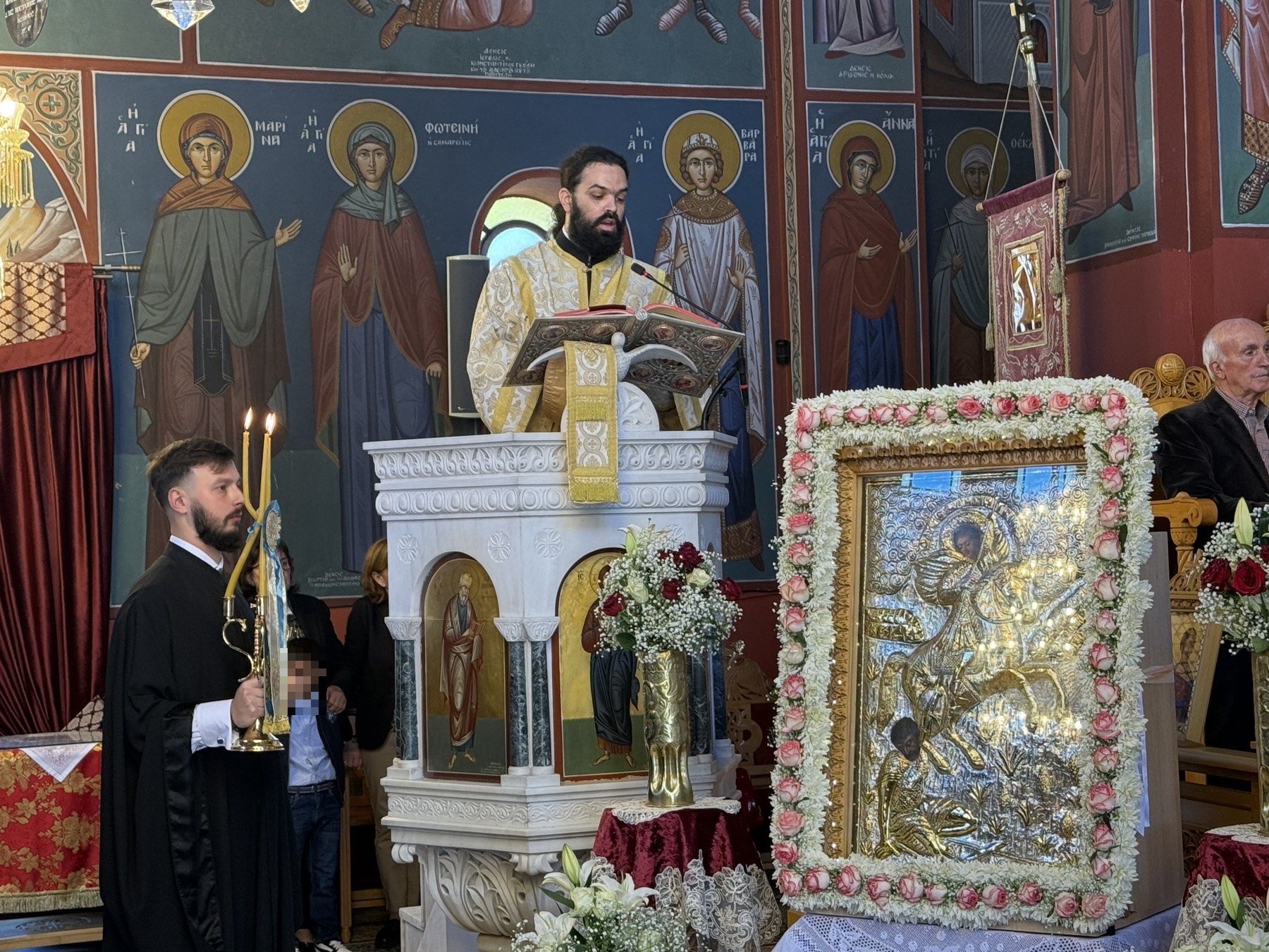 Προ του “Δι΄ευχών” ο Σεβασμιώτατος στο λόγο του προς τους πιστούς αναφέρθηκε στη γενναιότητα και παλικαριά, που επέδειξε ο Άγιος Δημήτριος υπομένοντας τα μαρτύρια για την πίστη του στον Χριστό και προέτρεψε τους πιστούς να μιμηθούν την ακλόνητη πίστη του Αγίου και να φωτίζουν με την ζωή τους δίδοντας μαρτυρία Ιησού Χριστού. Επίσης, εκ μέρους του Εκκλησιαστικού Συμβουλίου ο Σεβασμιώτατος πρόσφερε στον Αντιπεριφερειάρχη Βοιωτίας κ. Γεώργιο Ντασιώτη μια εικόνα του Αγίου Δημητρίου.
