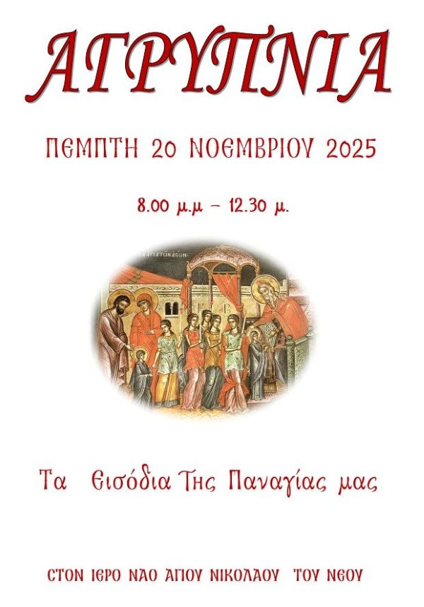 Αγρυπνία στον Ιερό Ναό Αγίου Νικολάου του Νέου Θηβών