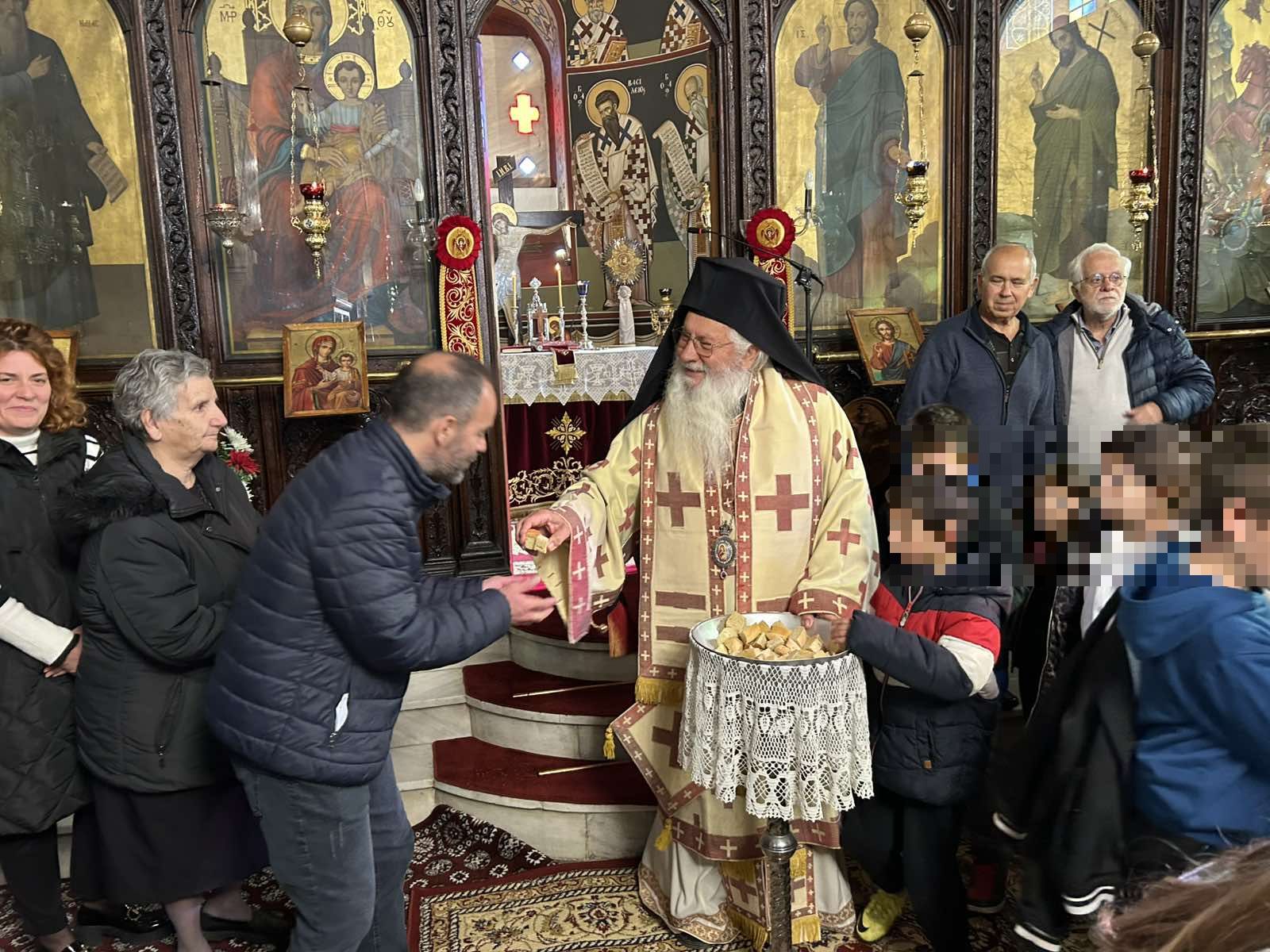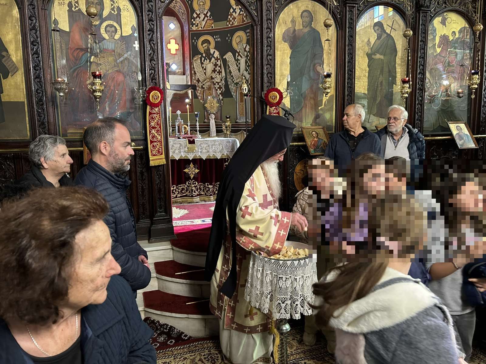 Μετά τη Θεία Λειτουργία άπαντες μετέβησαν στο παρακείμενο Πνευματικό Κέντρο της Μητροπόλεως (Μετόχι Ιεράς Μονής Ιερουσαλήμ), όπου προσφέρθηκε κέρασμα από την ενορία σε όλους, ενώ ο Σεβασμιώτατος πρόσφερε τετράδια και στυλό στους μαθητές. Ο Σεβασμιώτατος συνομίλησε με τα παιδιά, που είναι το μέλλον του τόπου μας, όπως και με τους εκπαιδευτικούς των σχολείων, που με το αθόρυβο έργο τους διαπαιδαγωγούν τη μαθητιώσα νεολαία.