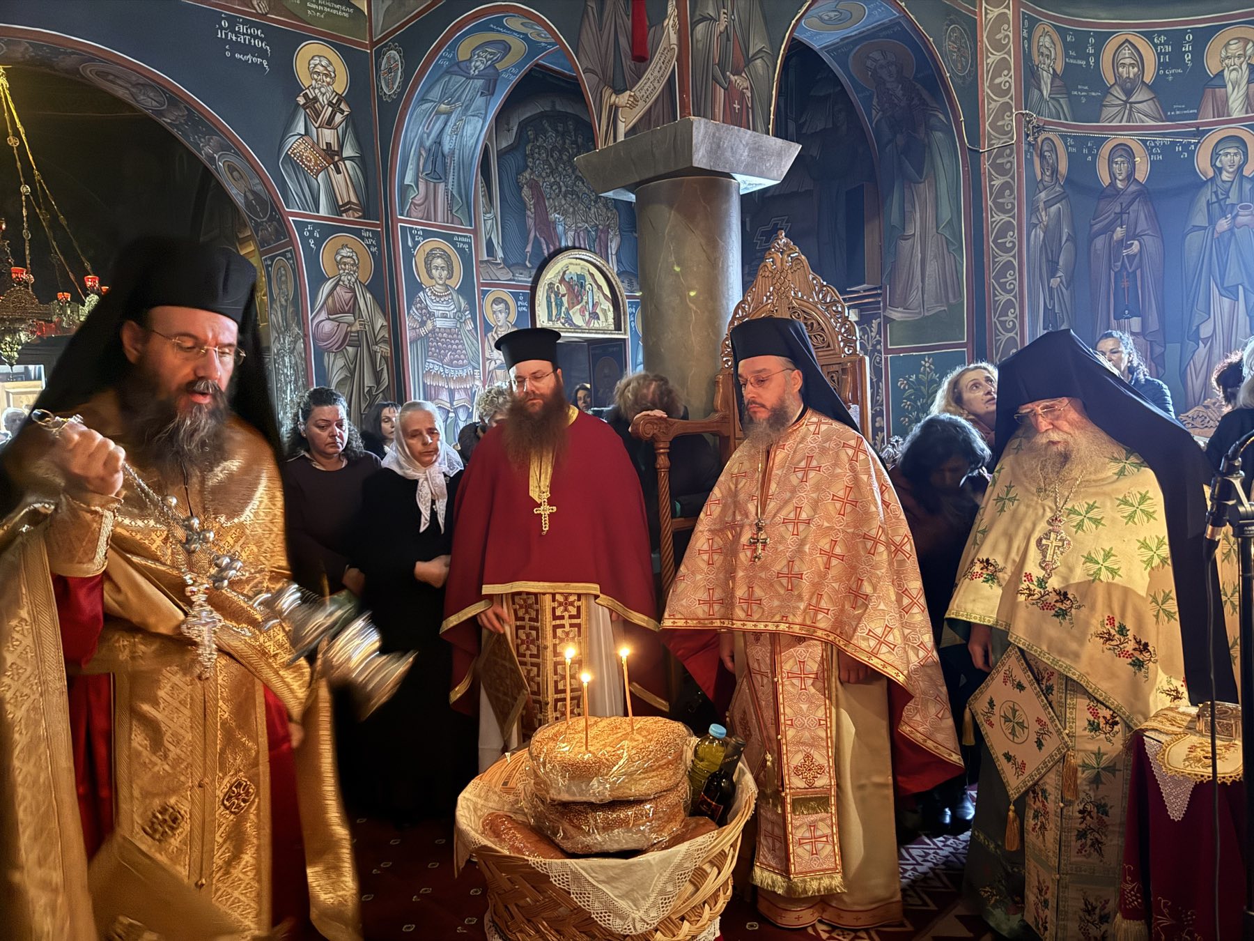 Το Σάββατο 20 Δεκεμβρίου, ημέρα μνήμης του Αγίου Ιγνατίου του Θεοφόρου, ο Σεβασμιώτατος Ποιμενάρχης μας παρέστη συμπροσευχόμενος στη Θεία Λειτουργία, που τελέστηκε στην Ιερά Μονή Αγίας Παρασκευής Κορωνείας, με τη συμμετοχή πάρα πολλών πιστών. Ο Σεβασμιώτατος ευλόγησε τους προσφερθέντες άρτους και μίλησε στους πιστούς για τον Άγιο Ιγνάτιο, ενώ αναφέρθηκε και στον μακαριστό Μητροπολίτη Βερατίου, Αυλώνος και Κανίνης κυρό Ιγνάτιο, με προτροπή του οποίου ανηγέρθη Παρεκκλήσιο του Αγίου Ιγνατίου στην Ιερά Μονή κι γι’ αυτό η Μονή τιμά ιδιαιτέρως τον Άγιο. Τέλος, ο Σεβασμιώτατος ευχήθηκε στον πανοσ. αρχιμ. π. Ιγνάτιο Χαϊκάλη, ο οποίος εξυπηρετεί λειτουργικά την Ιερά Μονή, για την ονομαστική του εορτή, επίσης ευχήθηκε στη Γερόντισσα και στις μοναχές της Μονής, καθώς και στους προσκυνητές καλά και ευλογημένα Χριστούγεννα.