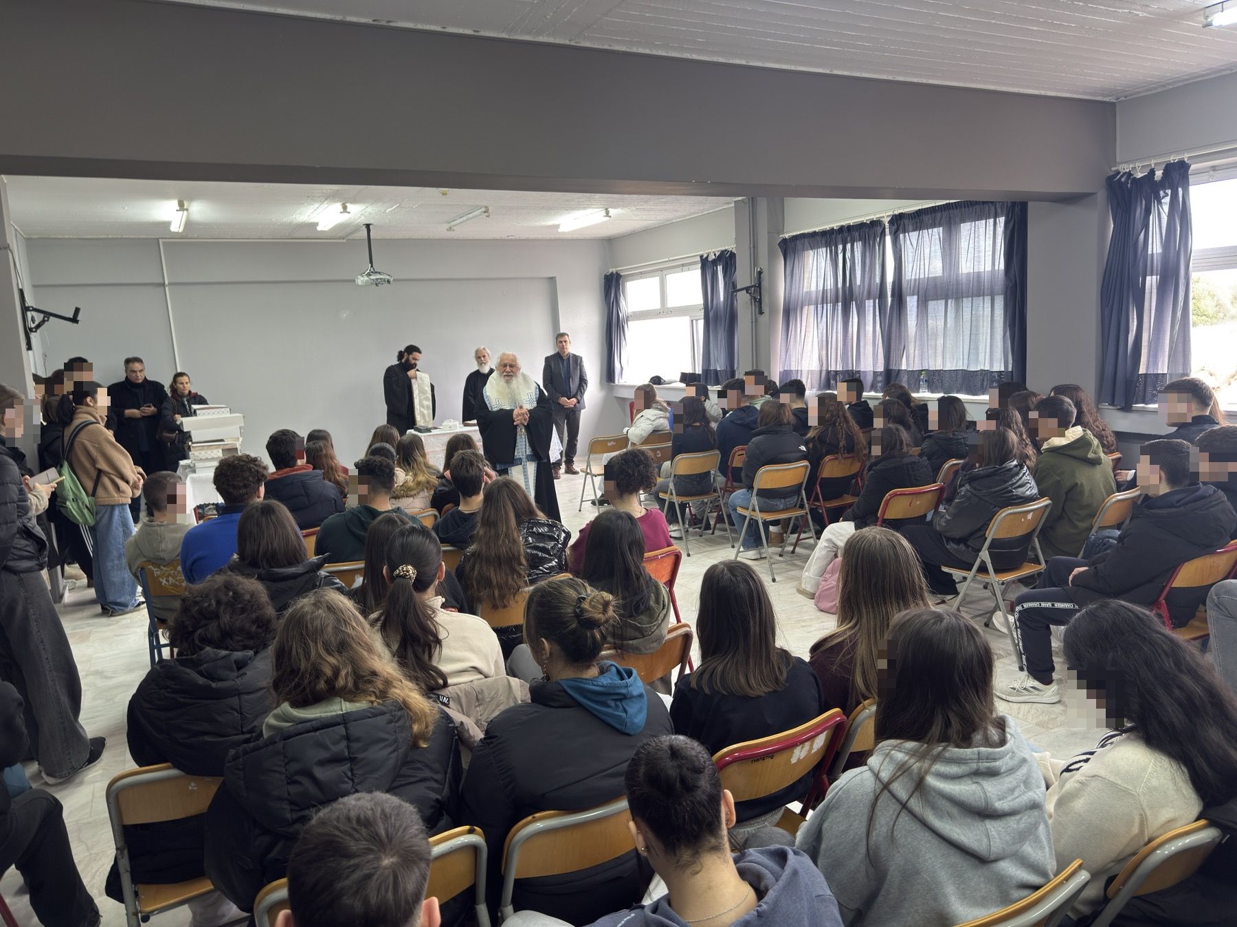 Στη συνέχεια ο Σεβασμιώτατος μετέβη στο 1ο Λύκειο Θηβών, όπου ευλόγησε τη βασιλόπιτα του Σχολείου. Ο Σεβασμιώτατος μίλησε στους μαθητές για επίκαιρα θέματα, όπως τη βία που υπάρχει μεταξύ των νέων, επεσήμανε στα παιδιά τους κινδύνους της αλόγιστης χρήσης των κοινωνικών δικτύων κ.ά., και τους ευχήθηκε καλή πρόοδο. Επίσης, ευχαρίστησε τον Διευθυντή του Σχολείου κ. Χρήστου και ευχήθηκε σε όλους καλή και ευλογημένη χρονιά.