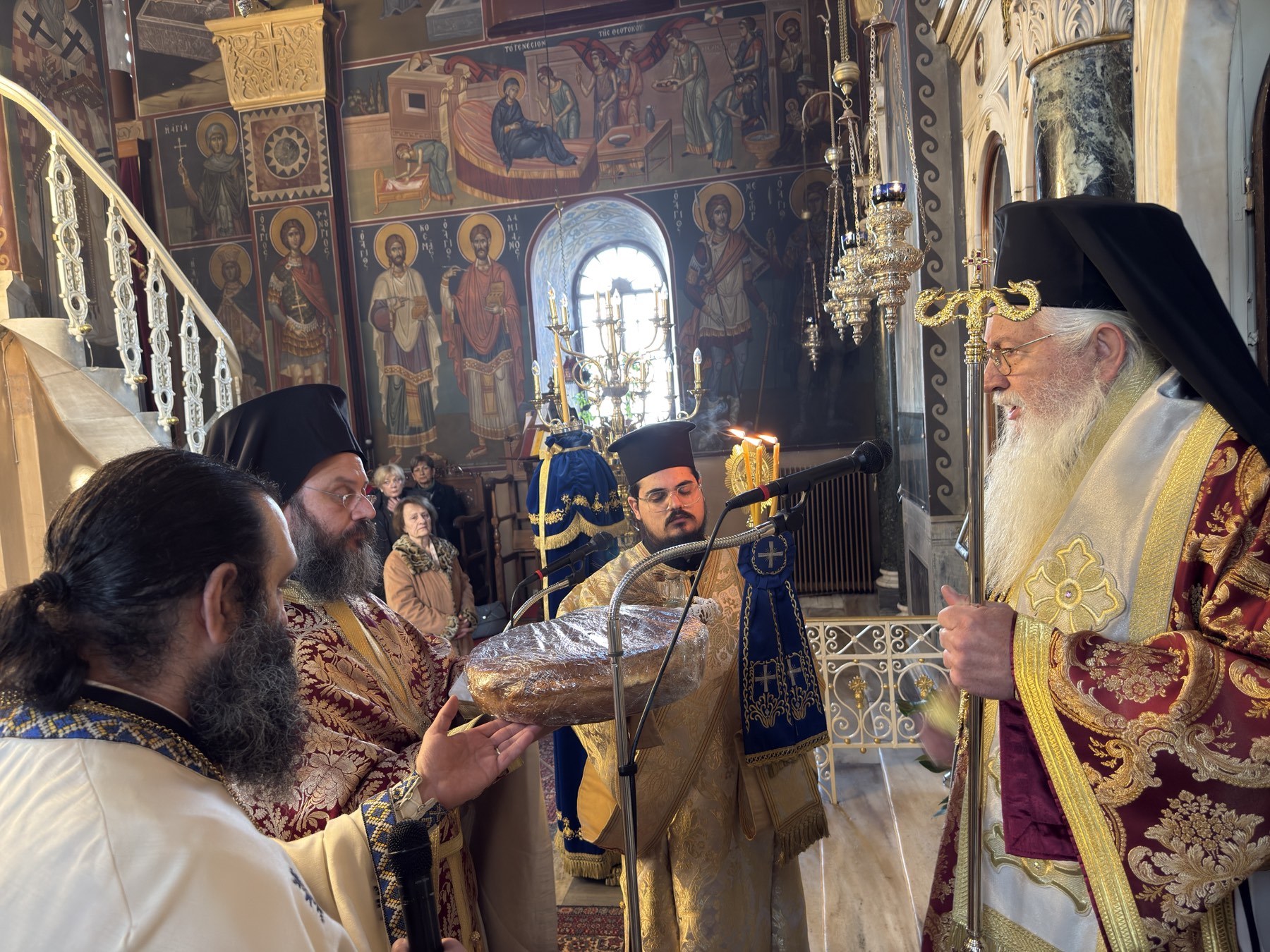 Ο Σεβασμιώτατος απευθυνόμενος στους πιστούς μίλησε για την εορτή της Υπαπαντής και για τη μητέρα, αφού παραδοσιακά η εορτή της Υπαπαντής είναι αφιερωμένη στη μητέρα, και ευχήθηκε χρόνια πολλά, υγεία και δύναμη σε όλους, καθώς και στις μητέρες και γιαγιάδες, και στα μέλη του Σωματείου “Εστία Μητέρας”, που τιμούν ιδιαιτέρως την εορτή της Υπαπαντής.