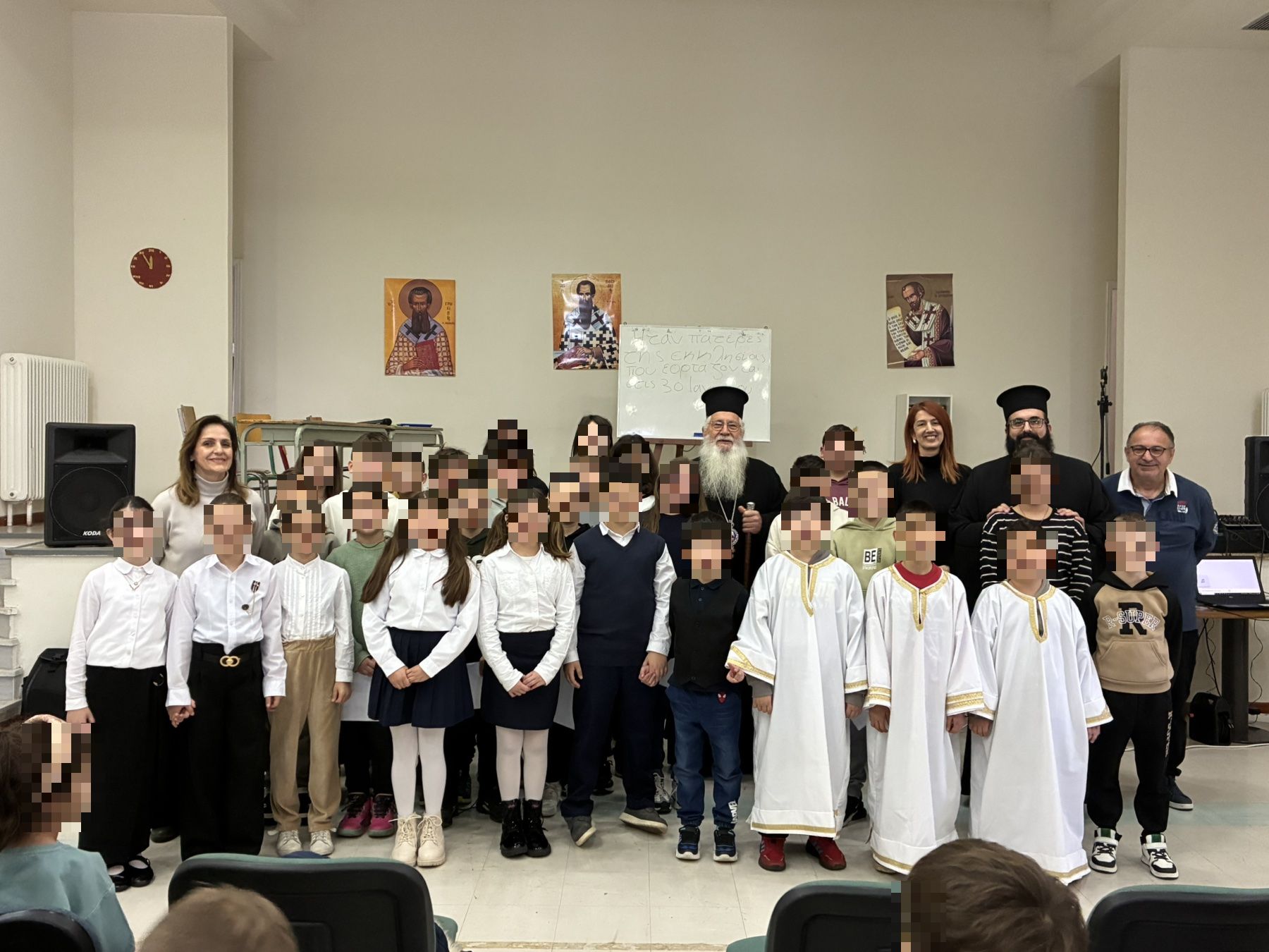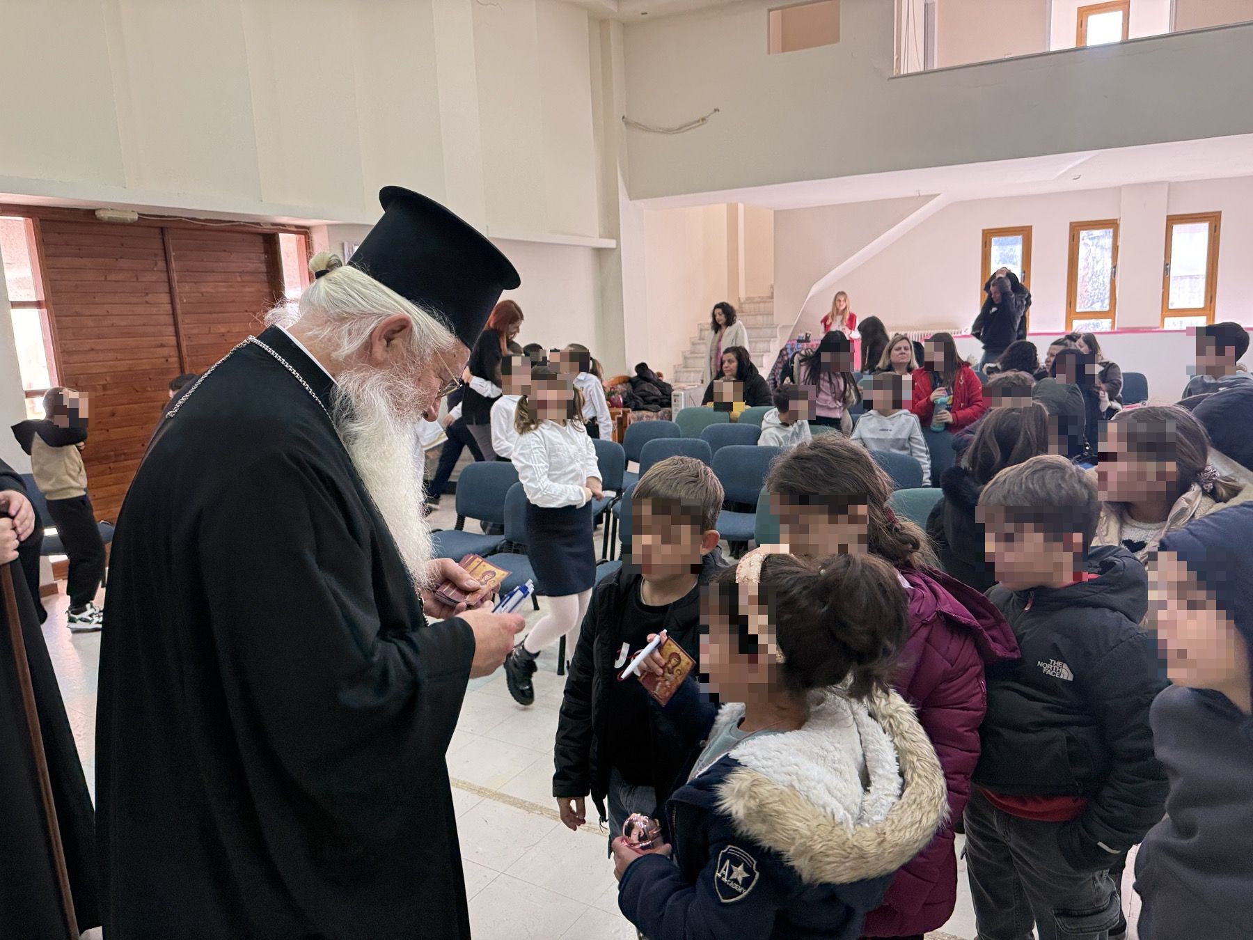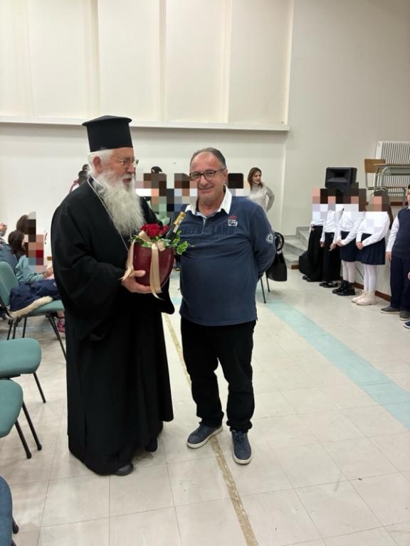 Την Τετάρτη 11 Φεβρουαρίου ο Σεβασμιώτατος Ποιμενάρχης μας κ. Γεώργιος μετέβη στο Καπαρέλλι, προσκύνησε στον Ιερό Ναό του Αγίου Παντελεήμονος και στη συνέχεια μετέβη στην αίθουσα εκδηλώσεων του Δημαρχείου, όπου παρακολούθησε το θεατρικό δρώμενο για τους Τρείς Ιεράρχες που είχαν ετοιμάσει οι μαθητές του Δημοτικού Σχολείου. Ο Σεβασμιώτατος συνεχάρη τα παιδιά, τους μίλησε για τους Τρείς Ιεράρχες και τους έδωσε ως ευλογία από μια εικονίτσα της Παναγίας κι ένα στυλό. Επίσης, ευχαρίστησε τον Διευθυντή του Σχολείου κ. Ν. Μπαλιάμη και τους δασκάλους, καθώς και το Σύλλογο Γονέων και Κηδεμόνων.