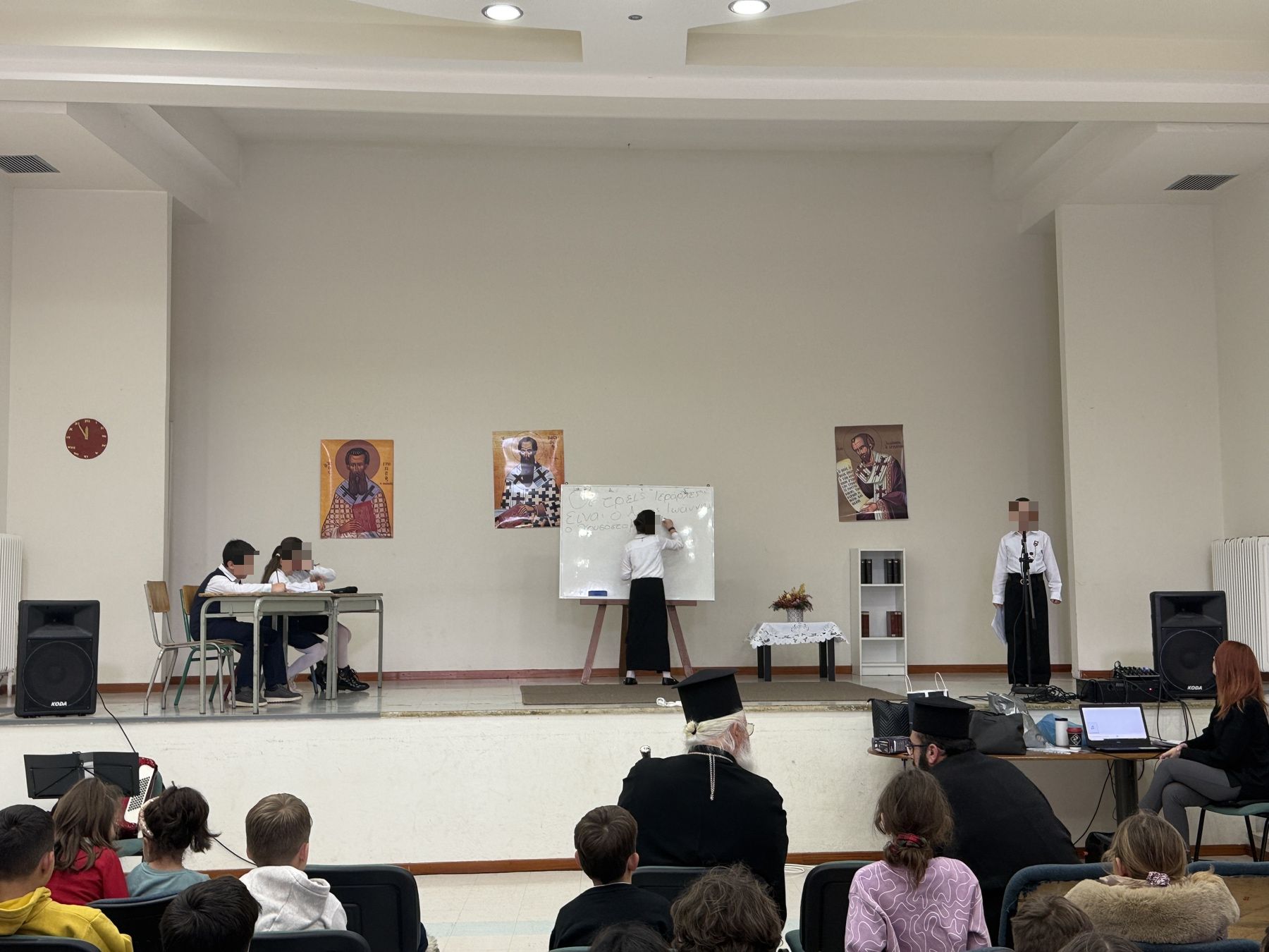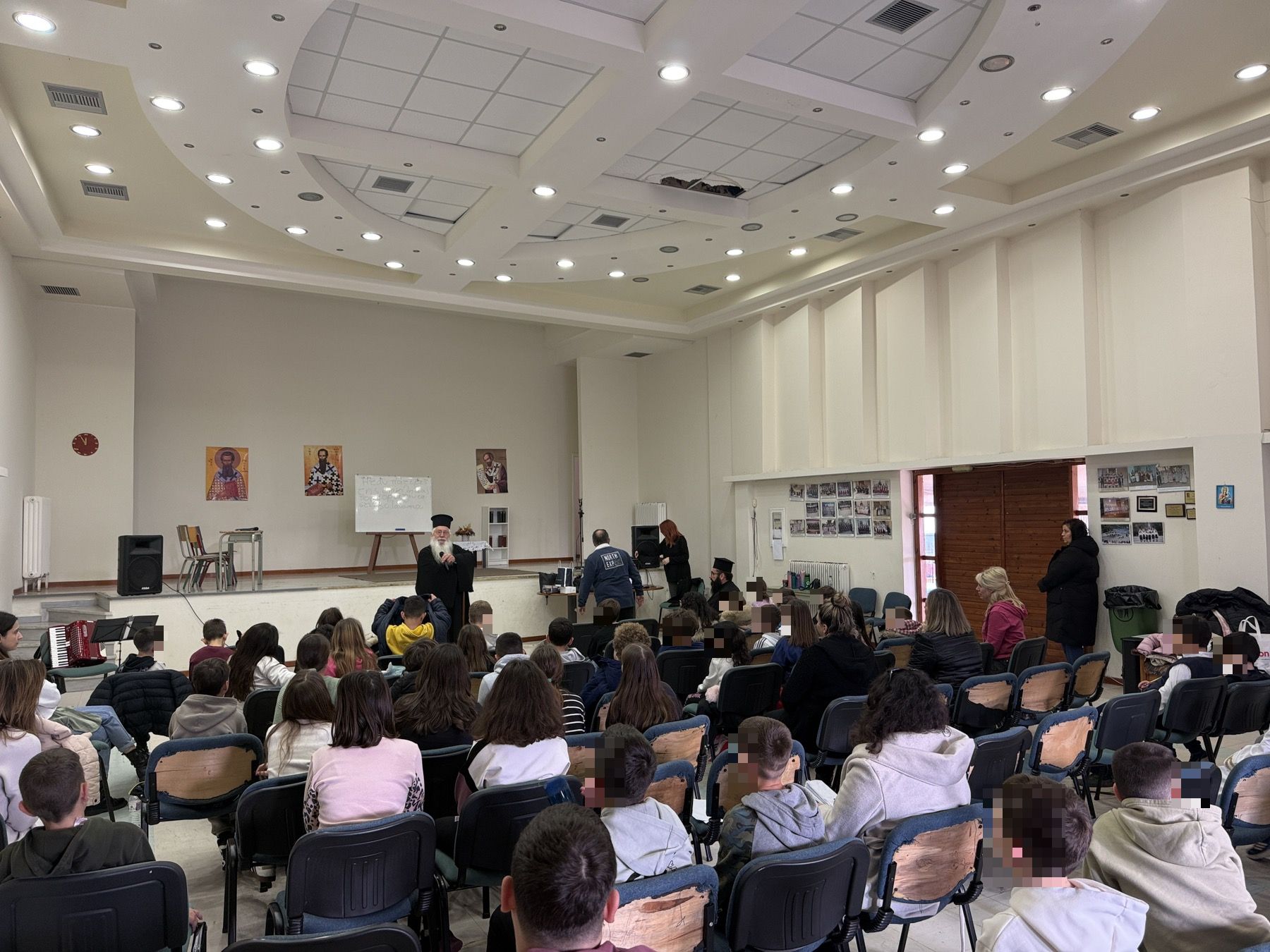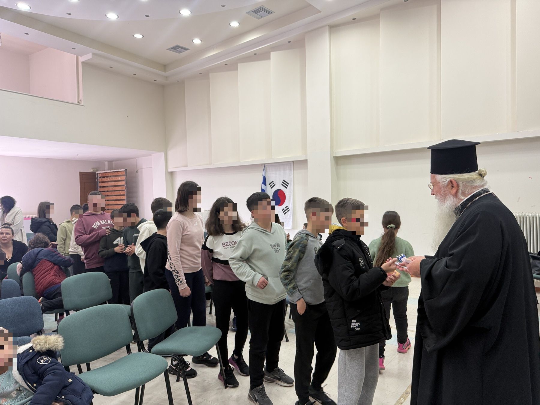 Την Τετάρτη 11 Φεβρουαρίου ο Σεβασμιώτατος Ποιμενάρχης μας κ. Γεώργιος μετέβη στο Καπαρέλλι, προσκύνησε στον Ιερό Ναό του Αγίου Παντελεήμονος και στη συνέχεια μετέβη στην αίθουσα εκδηλώσεων του Δημαρχείου, όπου παρακολούθησε το θεατρικό δρώμενο για τους Τρείς Ιεράρχες που είχαν ετοιμάσει οι μαθητές του Δημοτικού Σχολείου. Ο Σεβασμιώτατος συνεχάρη τα παιδιά, τους μίλησε για τους Τρείς Ιεράρχες και τους έδωσε ως ευλογία από μια εικονίτσα της Παναγίας κι ένα στυλό. Επίσης, ευχαρίστησε τον Διευθυντή του Σχολείου κ. Ν. Μπαλιάμη και τους δασκάλους, καθώς και το Σύλλογο Γονέων και Κηδεμόνων.